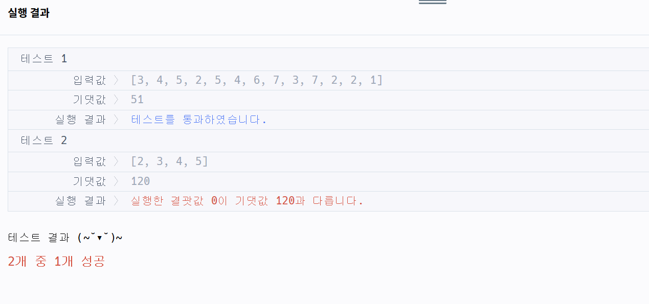 왜 그럴까 검색해보니 두번째 조건인 배열 길이가 10 이하일 때 anwer의 초기값이 0이기 곱하면 결과값이 0이 나오기 때문에 그런거였다.