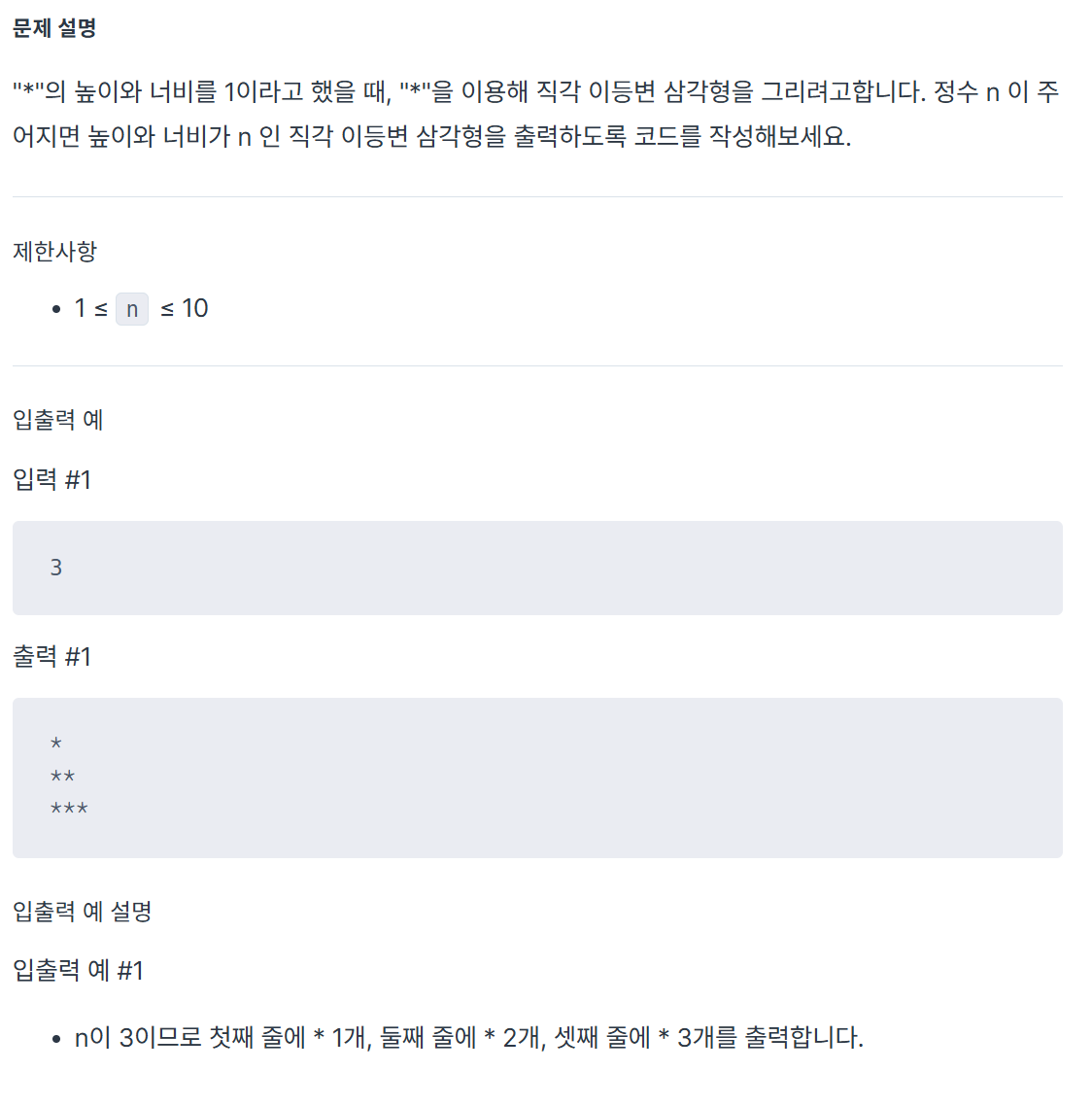 열의 갯수만큼 * 출력 후 실행이 끝나면 줄바꿈해 다음 행으로 넘어간다.