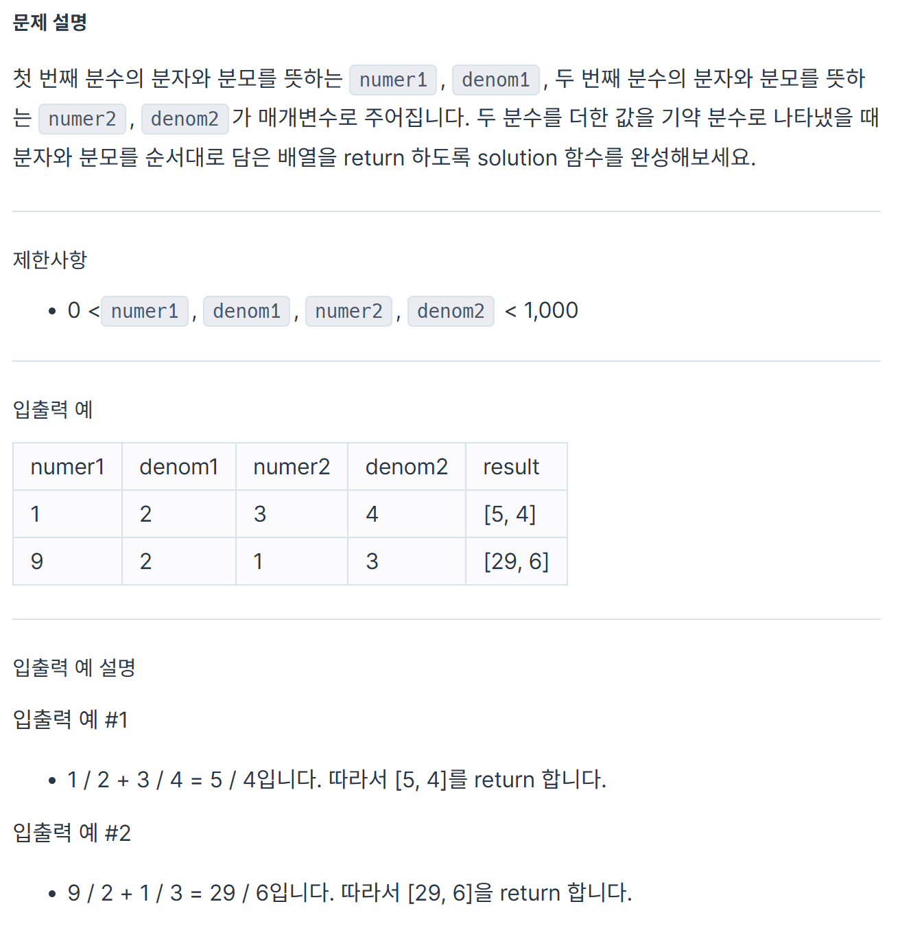 int denom = numer1*denom2+numer2*denom1; //두 분수의 분자를 공통 분모로 맞추어 더한 값
