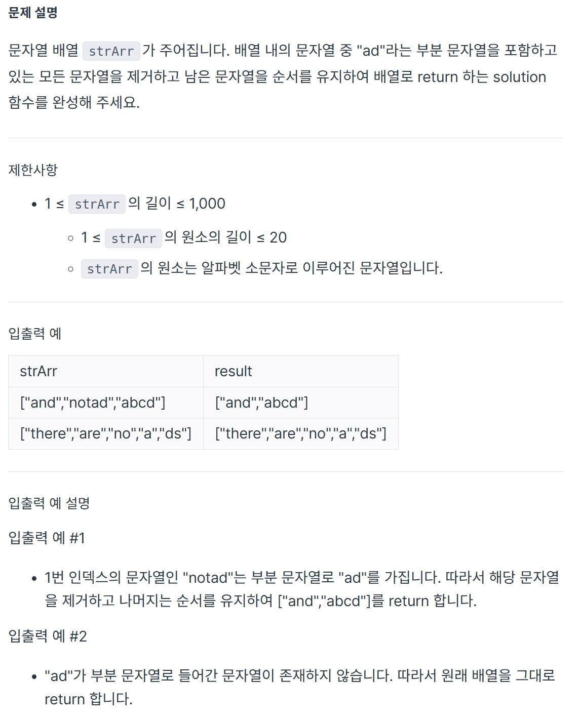 => 최종적으로 "ad"가 포함되지 않은 문자열들만 있는 배열을 반환