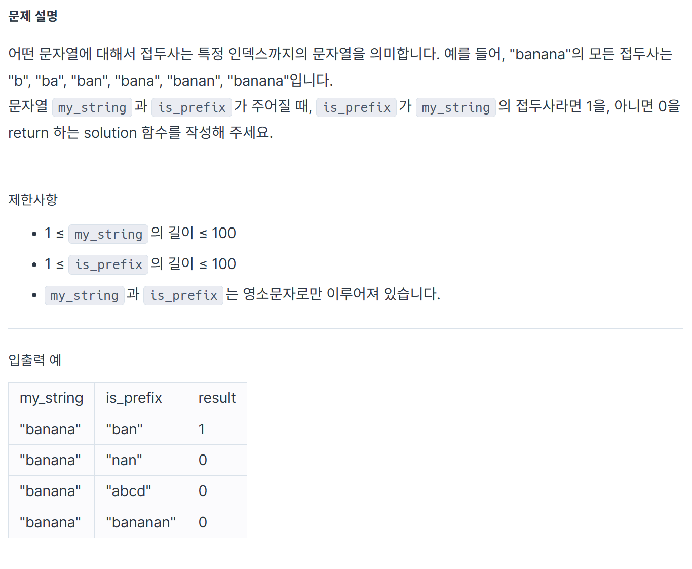 문자열 위치를 찾는 indexOf()를 사용해 my_string에서 is_prefix의 위치를 확인한다.
