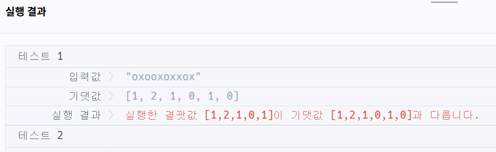처음에 위 코드처럼 작성했는데 테스트 1에서 다른 결과값이 나왔다.