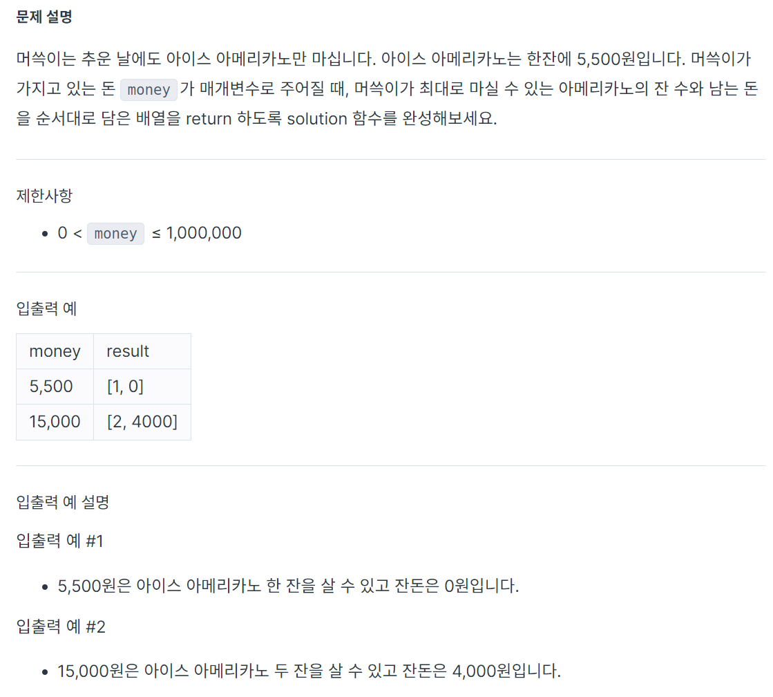 return new int[] { money / 5500, money % 5500 };