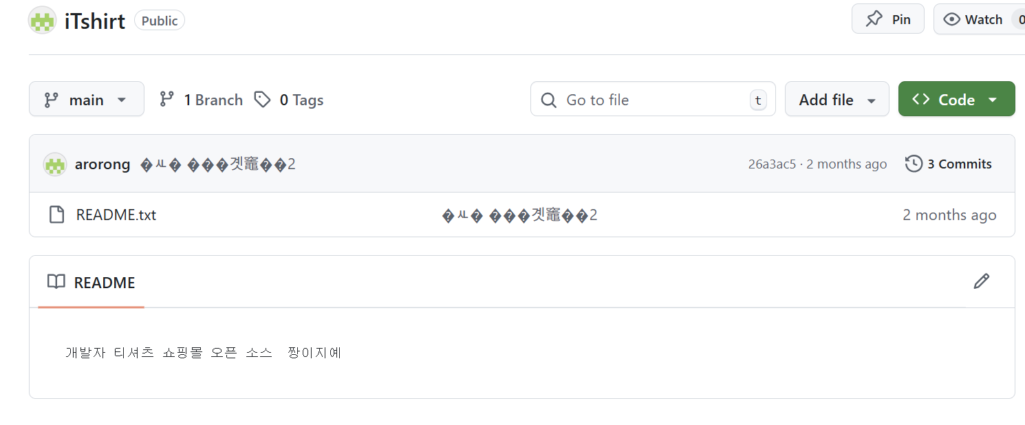 마침표를 붙이지 않으면 ITshirt-dog 폴더 안에 iTshirt라는 새로운 폴더가 생기고 그 폴더 안에 README.txt 파일과 [.git] 폴더가 생성됨. 딱히 상관은 없는데 폴더 구조가 복잡해진다.