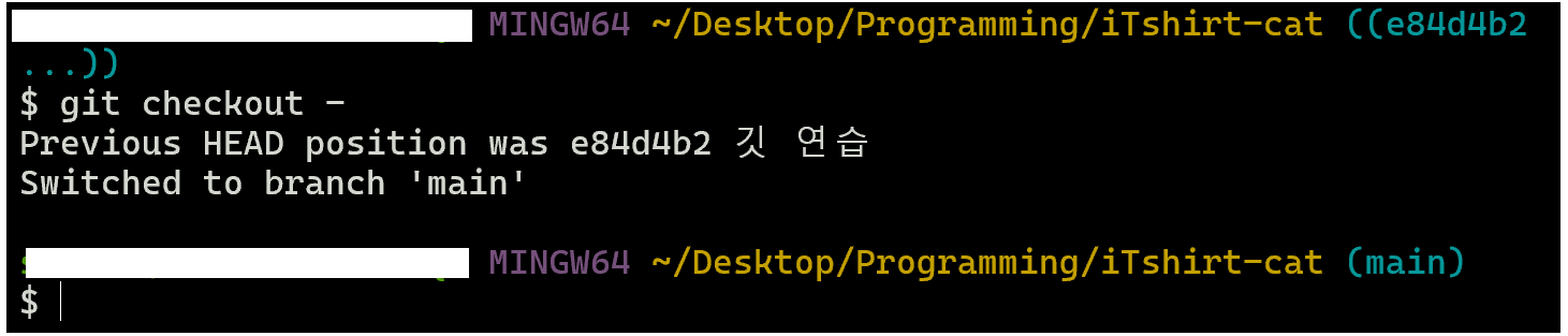 최근에는 switch 명령어와 restore 명령어로 나누어졌다고 한다.