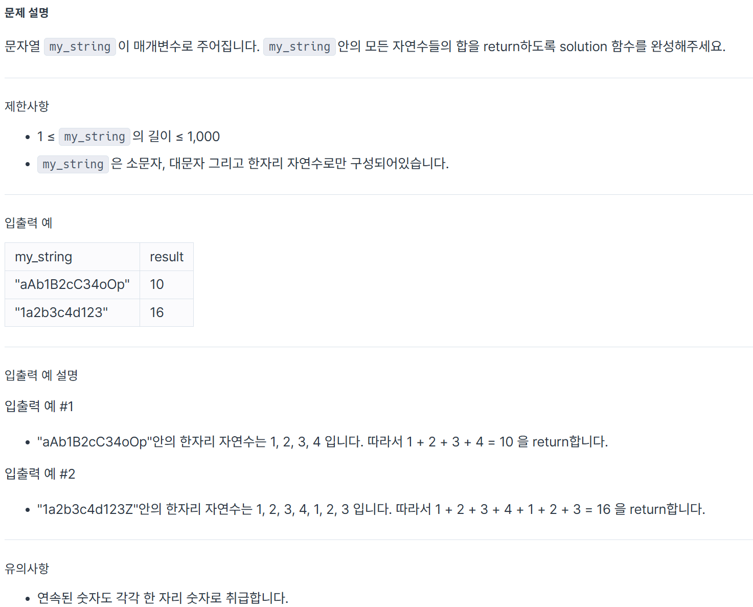 answer += str.charAt(i) - '0'; // 각 문자 값을 숫자로 변환 후 더함